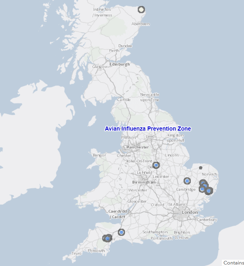 - 25/11/21 – third premises near Thirsk, Hambleton, North Yorkshire (Disease control zones no longer in force)